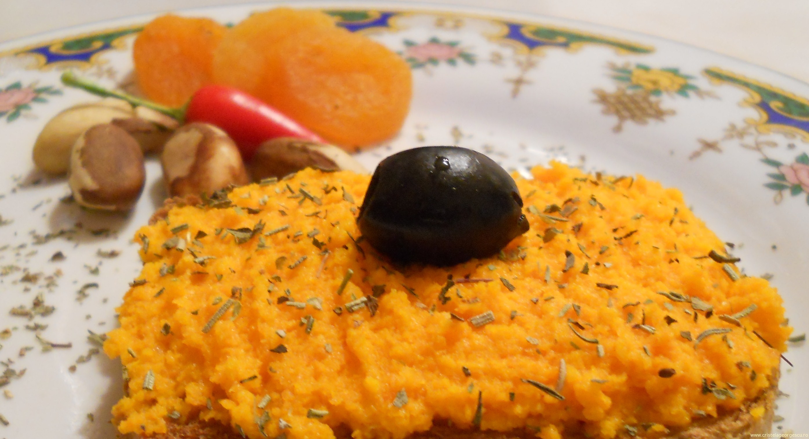 Acum vreo 3 zile, dupa ce am postat retetele de humus, halva si lapte de migdale, Ditta cea draga, proaspata mamica eroina (prietenii stiu de ce! 🙂 ), ne-a trimis ca si comentariu, o reteta indrazneata (spun asta pentru ca nu as fi indraznit sa combin niciodata morcovi cu usturoi), pe cat de simpla si rapida, pe atat de nutritiva si delicioasa: „ … Aveti nevoie de 3-4 morcovi (ii recomand pe cei romanesti), 1-2 catei de usturoi romanesc, ulei de masline presat la rece, si sare neiodata (eu folosesc condimentele BIO de la cei de la Sonnentor de ani de zile, iar “Sarea Mediteraneana” este perfecta ptr aceasta combinatie). Se rad morcovii pe razatoarea mica, se striveste usturoiul, se amesteca totul cu ulei de masline pana devine o masa compacta, si se sareaza dupa gust. Se serveste pe paine prajita. Daca nu doriti usturoi, merge foarte bine si fara. N-o sa va vina sa credeti cat de bun este!”.