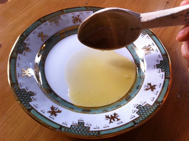 O minusculă bucățică de unt de cacao sau unt de cocos încălzit la bain-marie, se transformă în ulei de cacao sau de cocos.