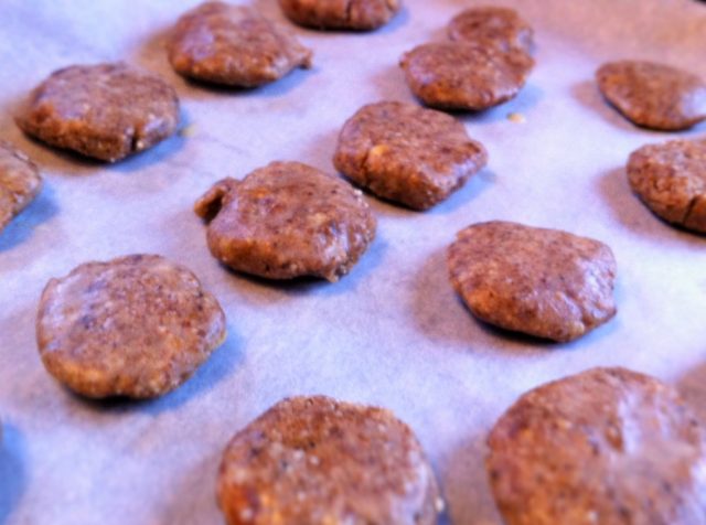 (Later edit: nu se pune la cuptor, doar se lasă putin la răcoare, cât se întărește untul de cacao/de cocos.)